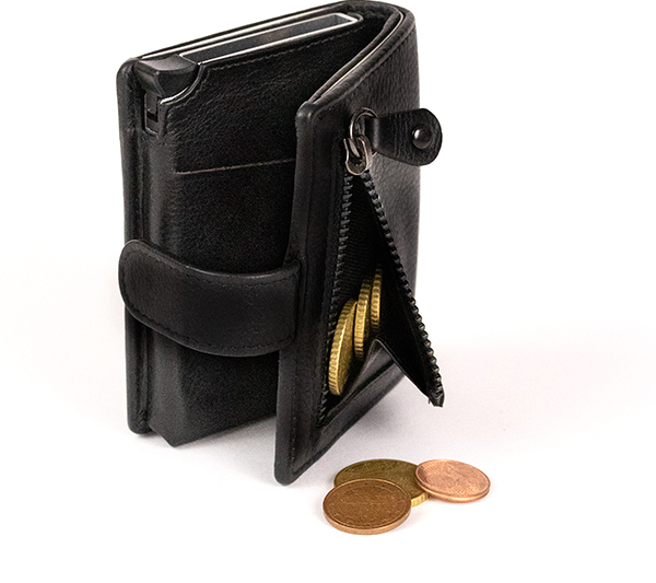 • Bargeld sicher verstaut: Münzfach mit Reißverschluss und Fach für Scheine